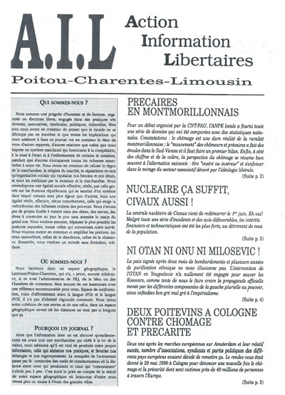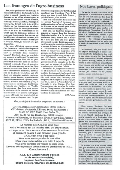 - Organisations éditrices : CNT 86 (Poitiers), OCL-Poitou (La Bussière), MAC (Niort),